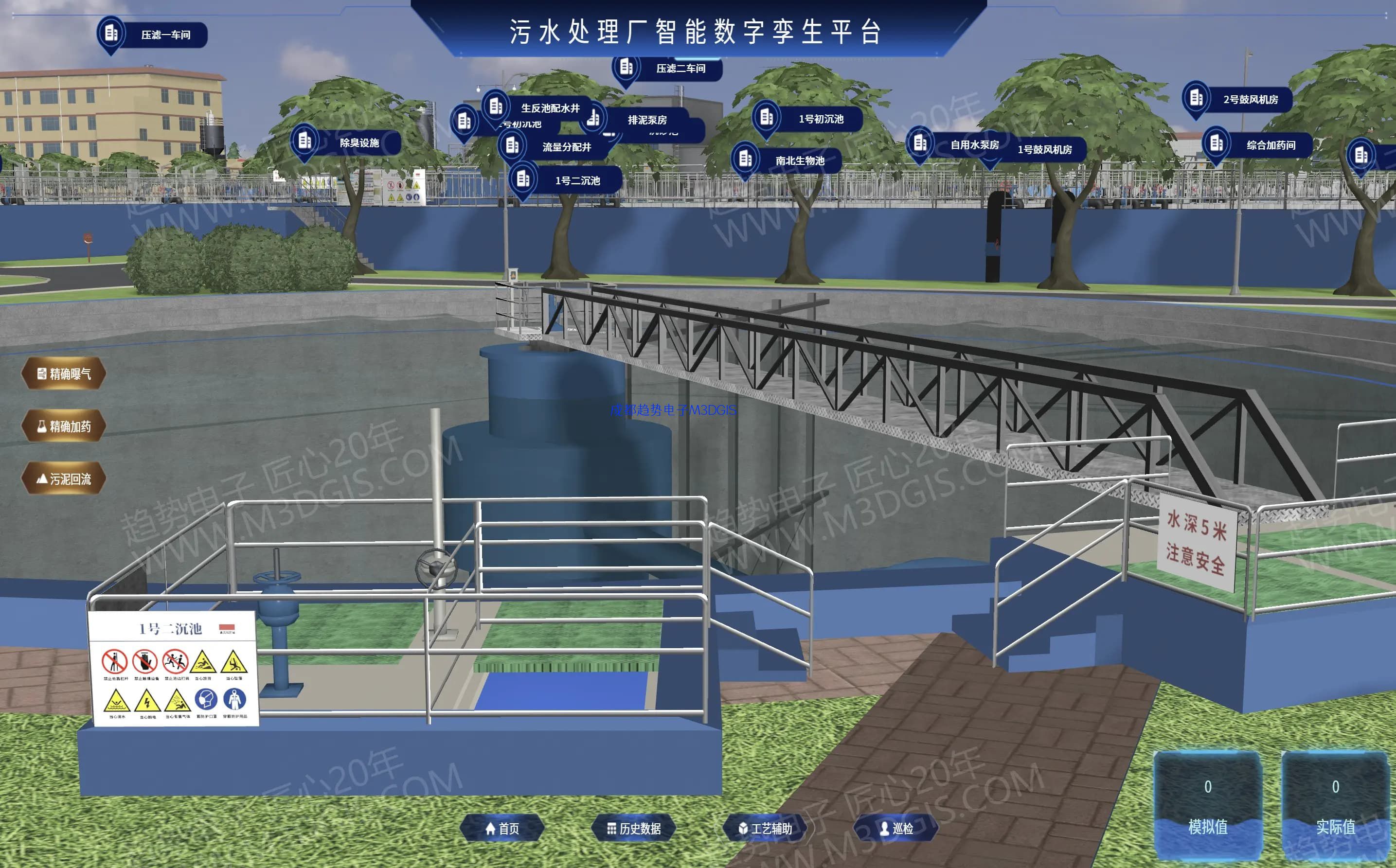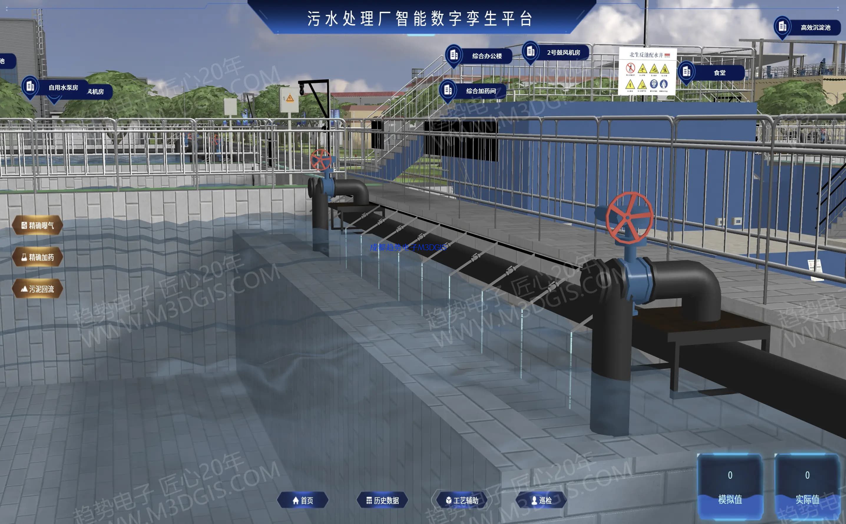在虚拟空间中创建一个与物理水厂完全对应的数字模型。这个模型可以实时映射物理水厂的运行状态,并允许工程师在数字世界中进行模拟、推演和优化,再将最优策略下发给实体水厂执行,实现“虚实联动”。这是最高级的智慧化表现形式。